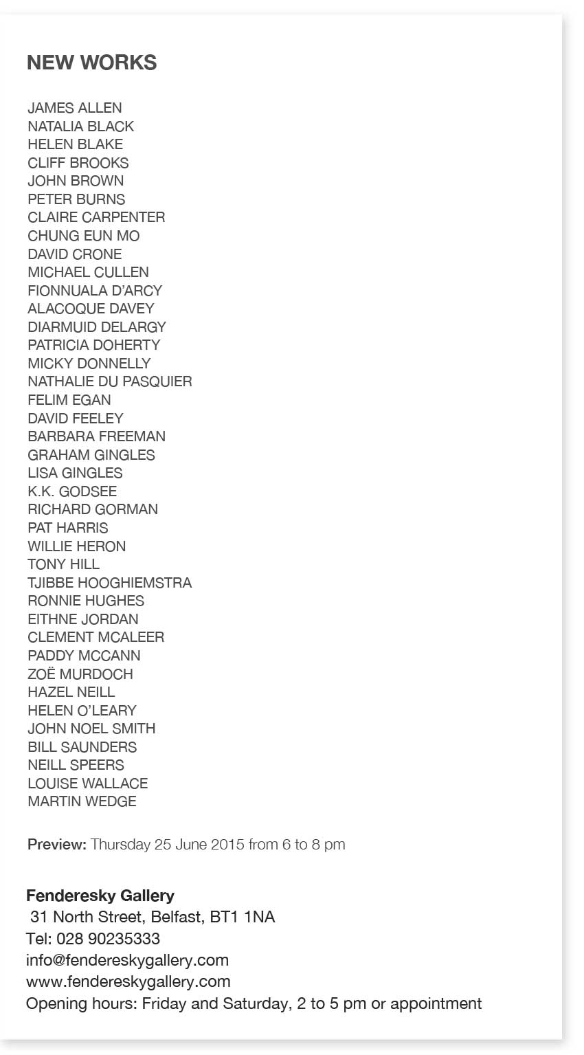 I am delighted to invite you to the group show in the Fenderesky Gallery, Belfast, N.Ireland this Thursday 26th of July, from 6pm till 8pm.